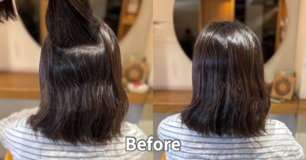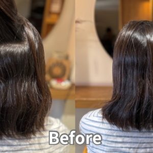 結べる長さは残しつつ、まとまりの良い扱いやすい髪にしたいというご希望でした。