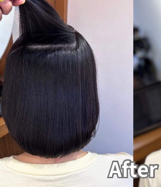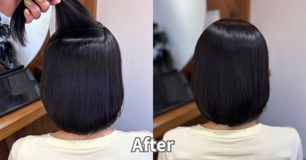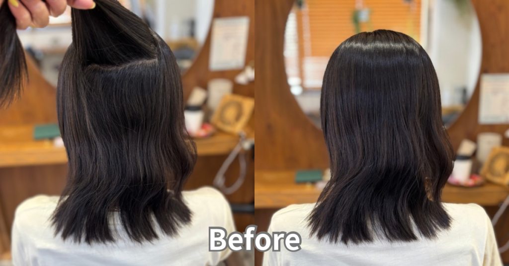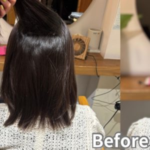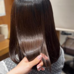 朝のセットをラクにしながら、艶とまとまりのあるヘアスタイルにしたいというご希望でした。