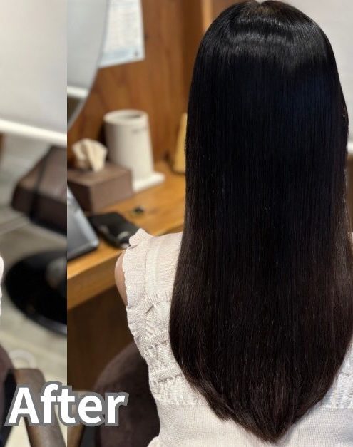髪質に合わせた優しい薬剤を選び、自然に動く柔らかなストレートを目指して施術しています。